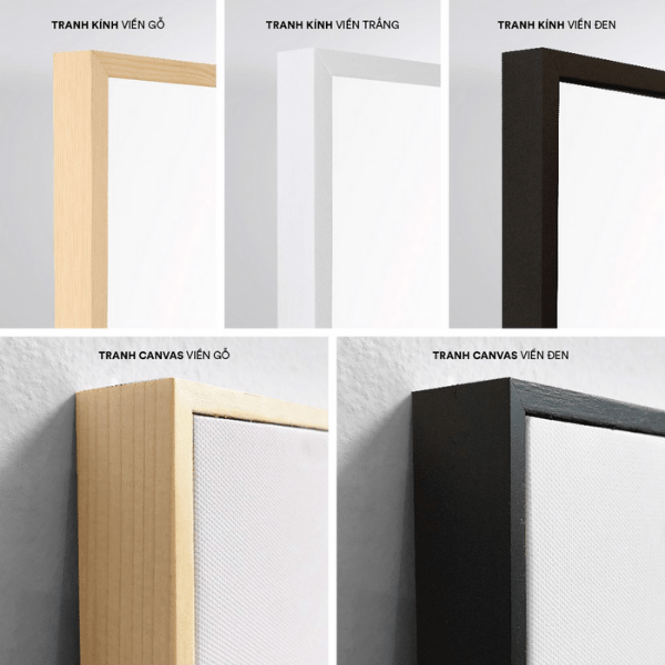 - Mặt tranh là vải canvas ép lên nhựa formex dày 5mm gắn khung composite chất liệu tranh rất nhẹ và bền mặt tranh bằng phẳng tối ưu đẹp nhất.