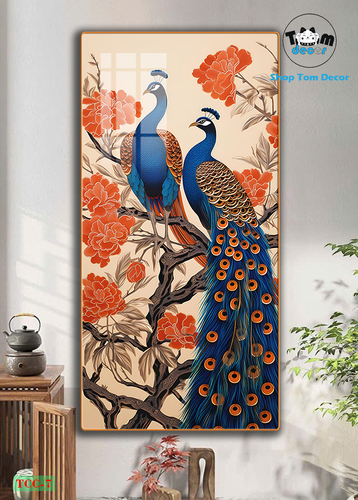 Tranh chim công tráng gương cao cấp - tranh phong thủy mẫu TCC-7