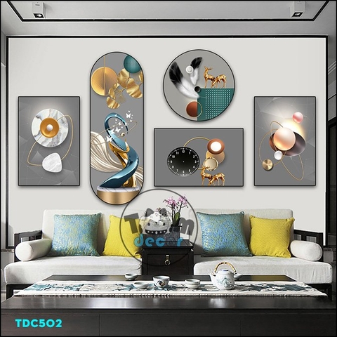 Tranh Ghép 5 Bức Tranh Trừu Tượng Tráng Gương Hoặc Tranh Nhựa Mặt Gương Dán Tường Bộ 5 Tấm - TDC502