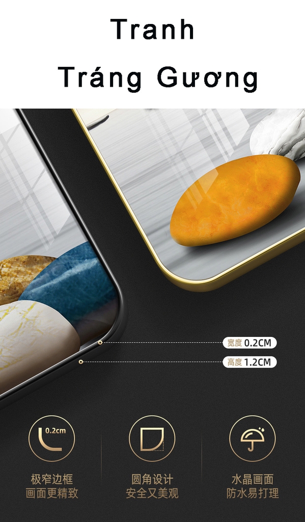- Chất liệu đế tranh là gỗ MDF dày 8mm được in mực UV cao cấp và phủ một lớp mica gương siêu bóng,viền cạnh được bo khung chắc chắn có màu đen hoặc màu vàng gương cho các bạn lựa chọn...