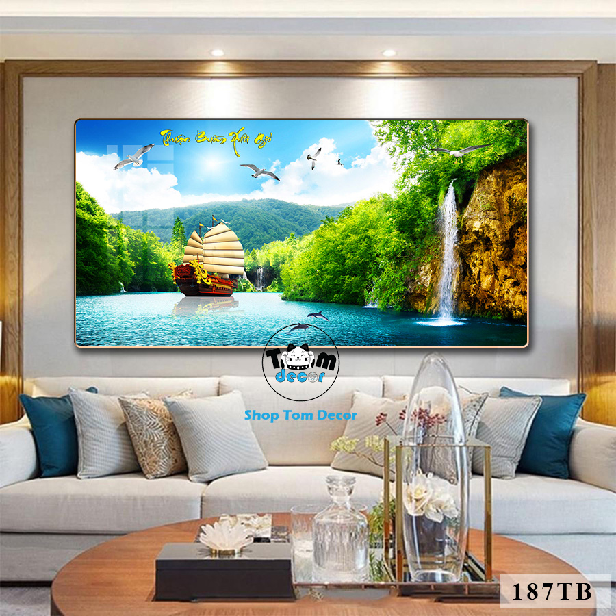 Tranh Thuận Buồm Xuôi Gió Tráng Gương Cao Cấp Tặng Đinh 4 Chân Treo Tranh