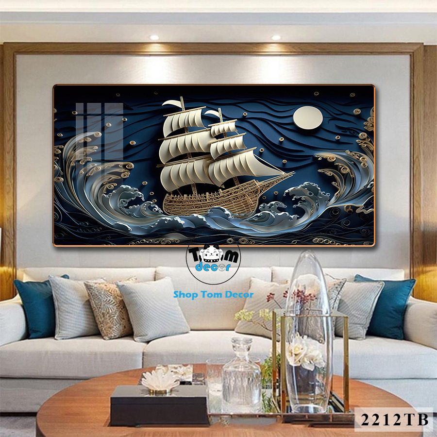 Tranh Thuận Buồm Xuôi Gió Tráng Gương Cao Cấp Tặng Đinh 4 Chân Treo Tranh