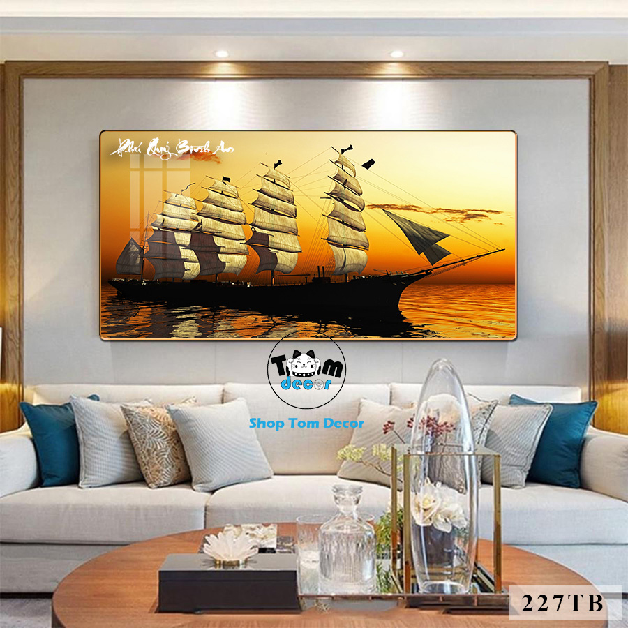 Tranh Thuận Buồm Xuôi Gió Tráng Gương Cao Cấp Tặng Đinh 4 Chân Treo Tranh