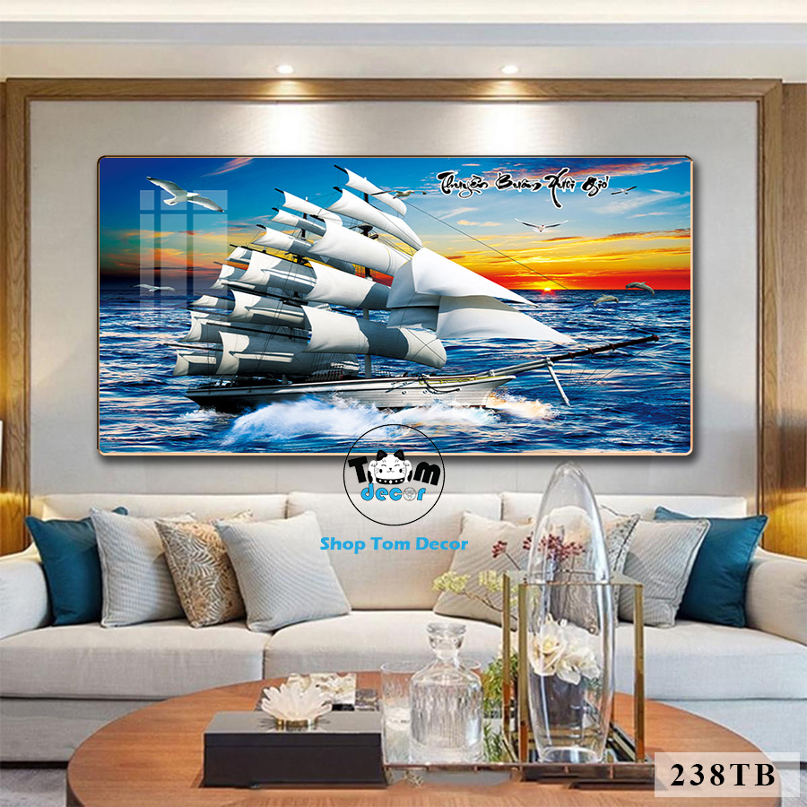 Tranh Thuận Buồm Xuôi Gió Tráng Gương Cao Cấp Tặng Đinh 4 Chân Treo Tranh