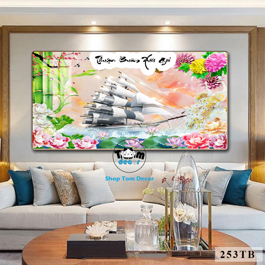 Tranh Thuận Buồm Xuôi Gió Tráng Gương Cao Cấp Tặng Đinh 4 Chân Treo Tranh