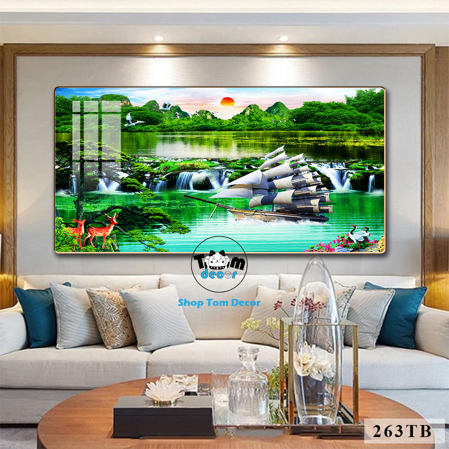 Tranh Thuận Buồm Xuôi Gió Tráng Gương Cao Cấp Tặng Đinh 4 Chân Treo Tranh