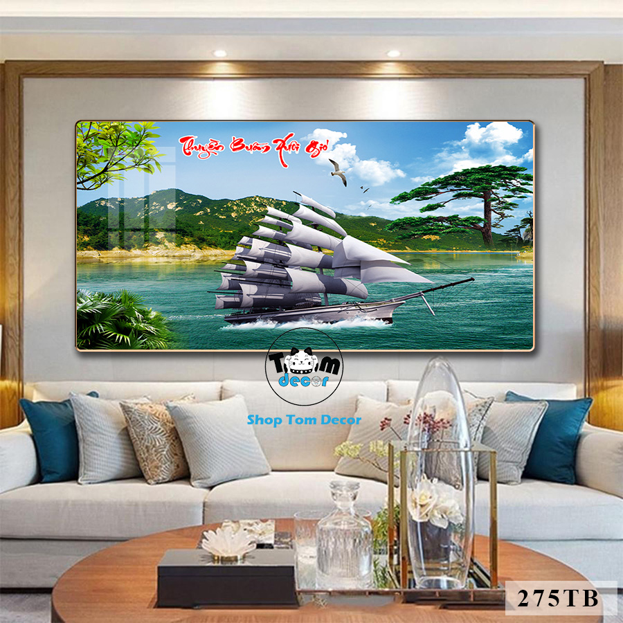 Tranh Thuận Buồm Xuôi Gió Tráng Gương Cao Cấp Tặng Đinh 4 Chân Treo Tranh