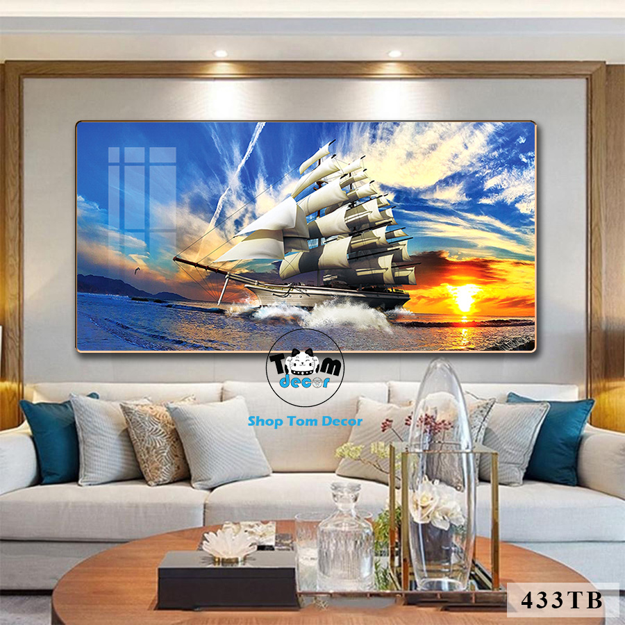 Tranh Thuận Buồm Xuôi Gió Tráng Gương Cao Cấp Tặng Đinh 4 Chân Treo Tranh