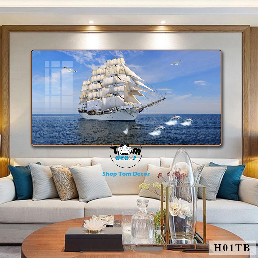 Tranh Thuận Buồm Xuôi Gió Tráng Gương Cao Cấp Tặng Đinh 4 Chân Treo Tranh